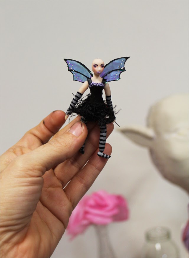 Working on these mini faries for Aimee, I think this is the smallest fairy I have ever made. Actually painting with needles wwwhhew! No hair yet... almost done! This is a mini repeat of one of my book fairies :O)